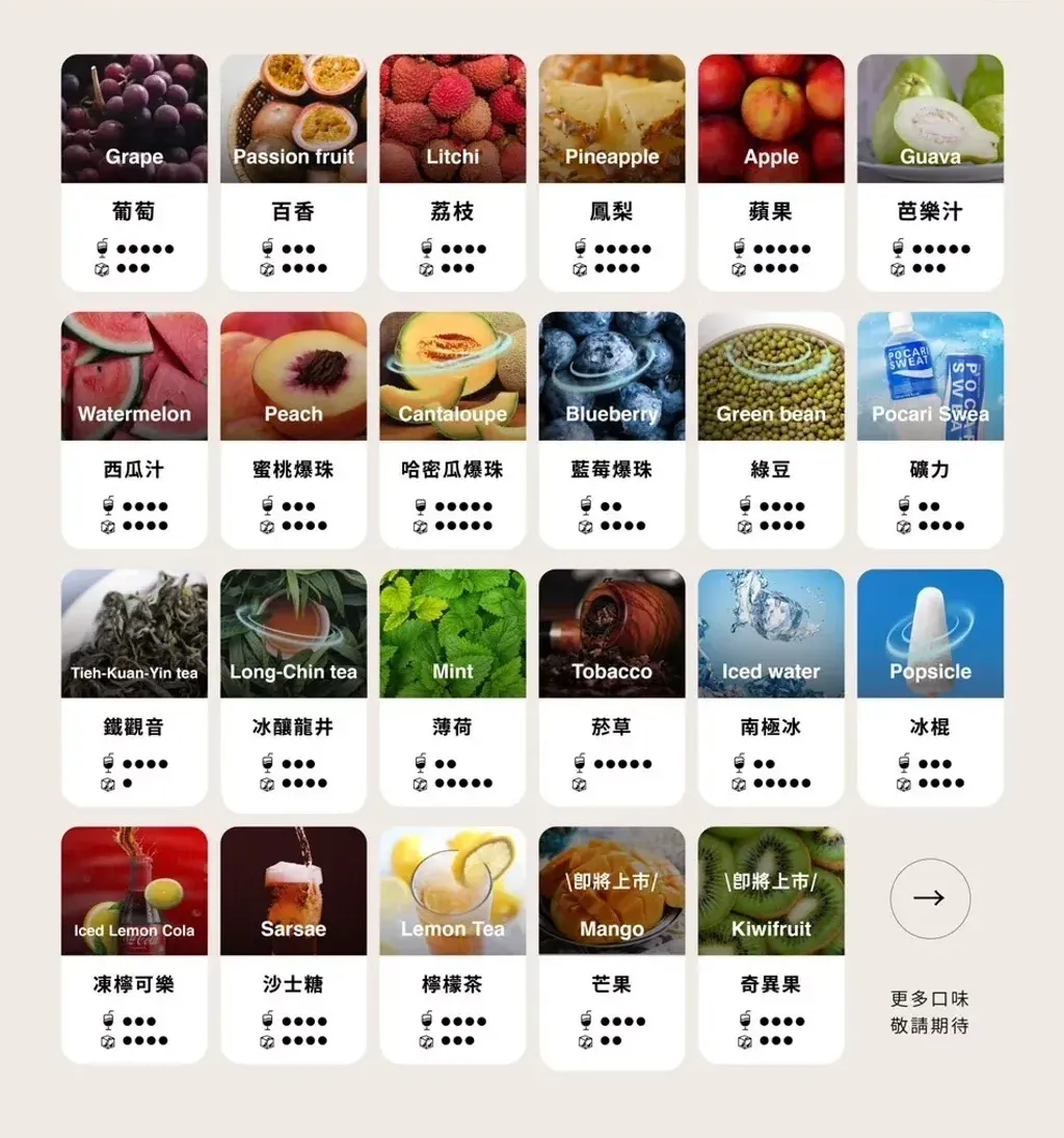Q:這款煙彈有哪些口味?