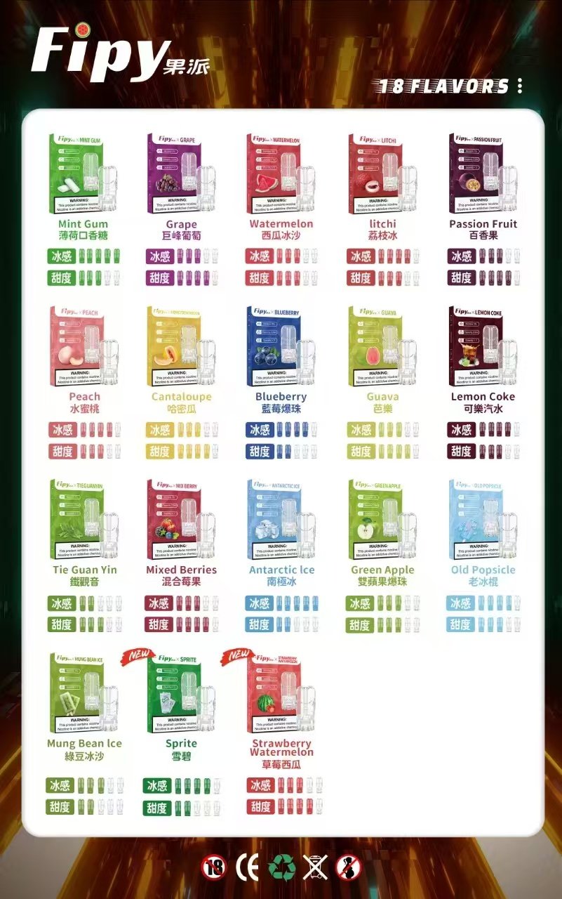 Fipy果派煙彈新品上市、18種口味任意挑選通用一代主機